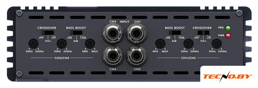 250 Вт×4 (4 Ом), 10–40000 Гц, сигнал/шум: 95 дБ