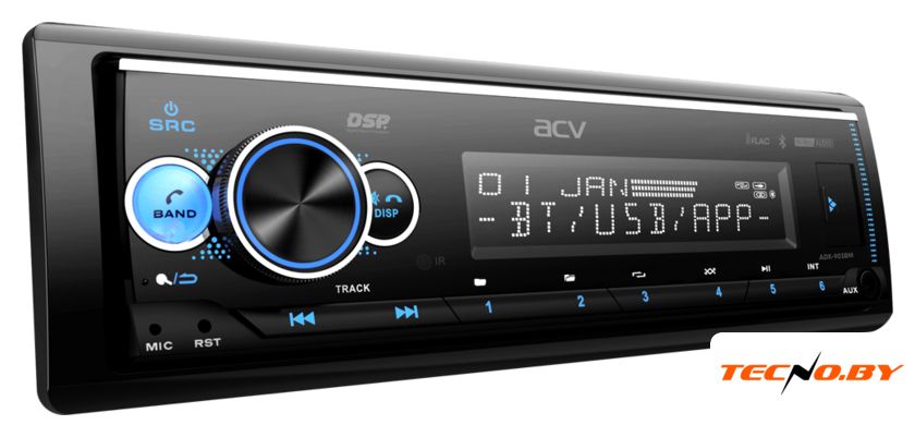 1DIN, USB-проигрыватель, USB, Bluetooth, усилитель 4x55 Вт, экран монохромный, пульт