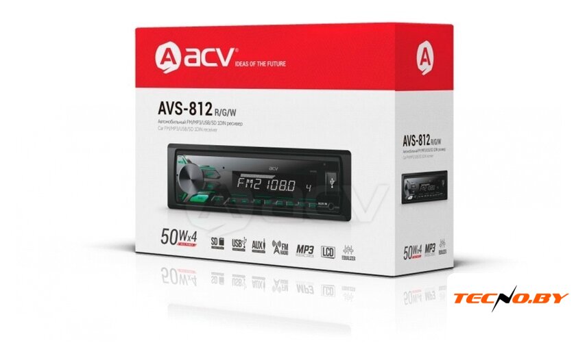 1DIN, USB-проигрыватель, USB, карты памяти, Bluetooth, усилитель 4x50 Вт, экран монохромный, пульт