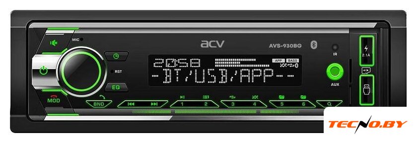 1DIN, USB-проигрыватель, USB, карты памяти, Bluetooth, усилитель 4x55 Вт, экран монохромный