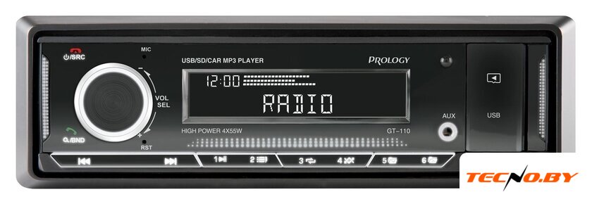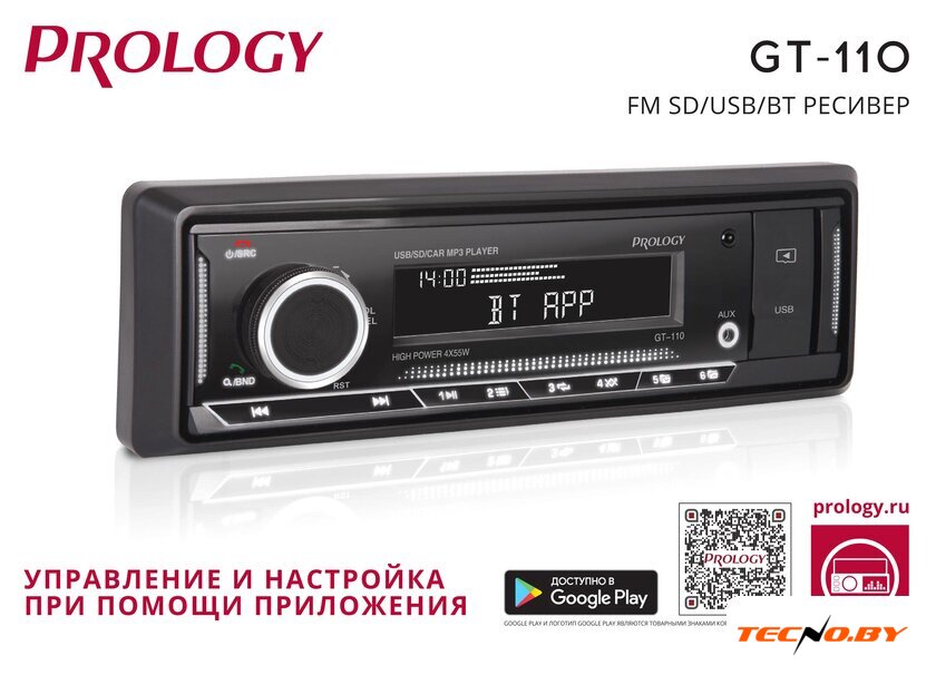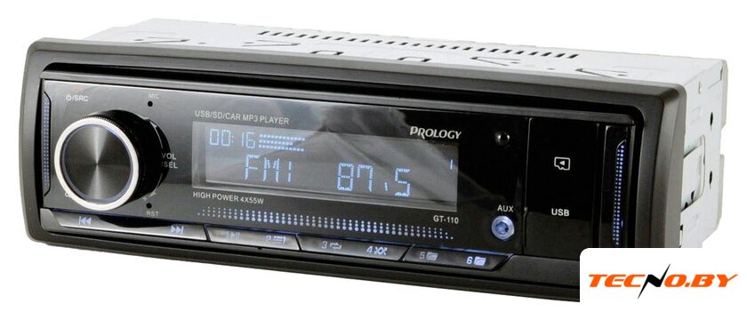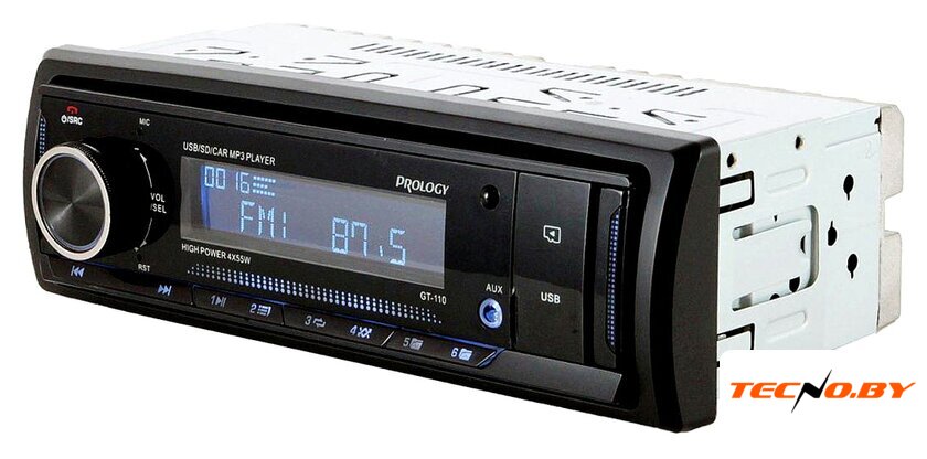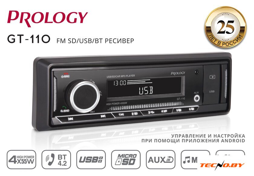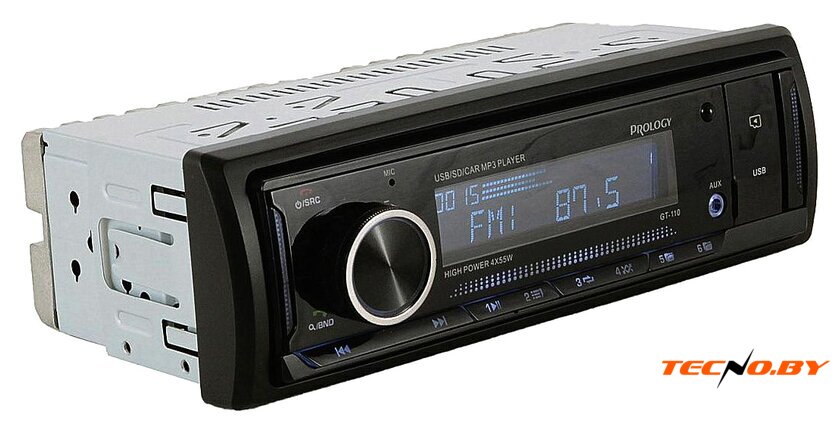 1DIN, USB-проигрыватель, USB, карты памяти, Bluetooth, усилитель 4x55 Вт, экран монохромный, пульт