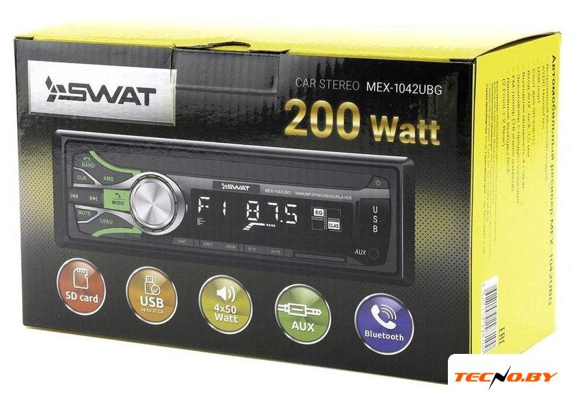 1DIN, USB-проигрыватель, USB, карты памяти, усилитель 4x50 Вт, экран монохромный