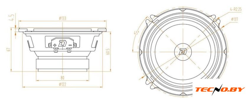 среднечастотная АС, 130 Вт, 70–10000 Гц, 94 дБ, 4 Ом, 1 полоса