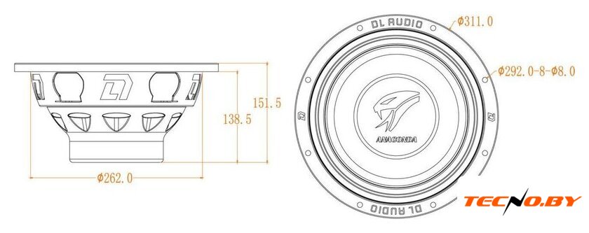 головка сабвуфера, 1000 Вт, 83.8 дБ, 2 Ом + 2 Ом