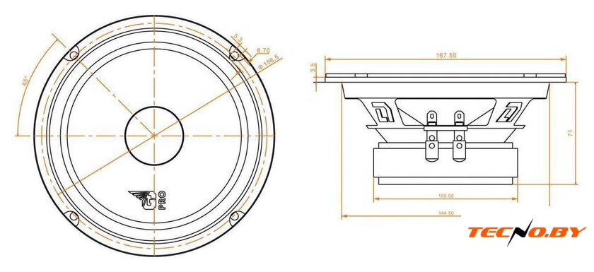 мидбас, 150 Вт, 105–15000 Гц, 94 дБ, 4 Ом, 1 полоса