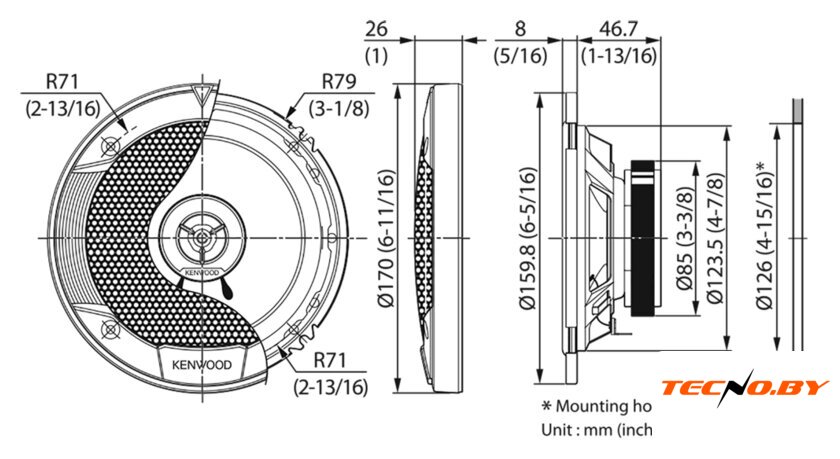 коаксиальная АС, 50 Вт, 70–20000 Гц, 89 дБ, 3 Ом, 2 полосы, ВЧ 0.5'', НЧ 5.25''