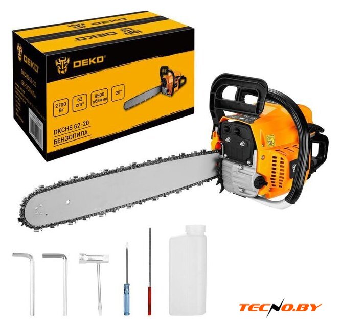 Комплект поставки | - Бензопила в частично разобранном виде (корпус двигателя – 1шт, шина – 1шт, цепь – 1шт, защитный щиток – 1шт, упор зубчатый (гребенка) – 1шт, саморезы – 2шт) - 1 шт.- Ключ свечи зажигания - 1 шт.- Отвертка для регулировки карбюратора - 1 шт.- Шестигранные ключи - 2 шт.- Напильник - 1 шт.- Емкость для приготовления топливной смеси - 1 шт.- Руководство по эксплуатации - 1 шт. |