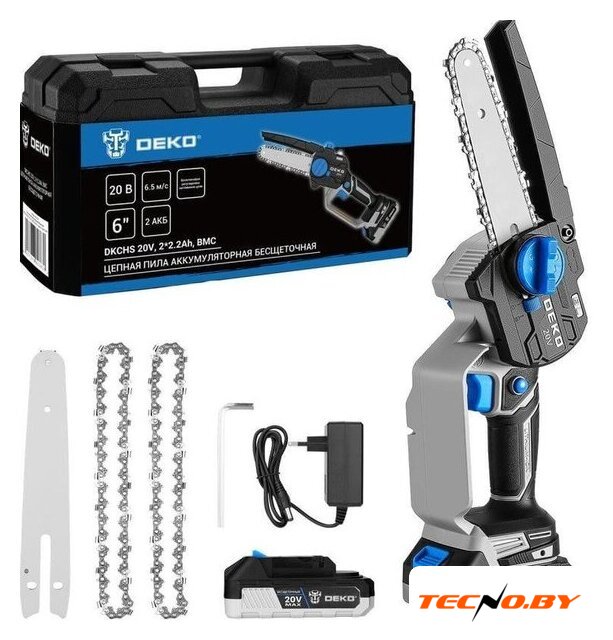 аккумуляторная, бытовая, 20 В, шаг цепи: 1/4 дюйма, длина шины: 20 см, аккумулятор в комплекте, быстрое натяжение цепи, 1.7 кг