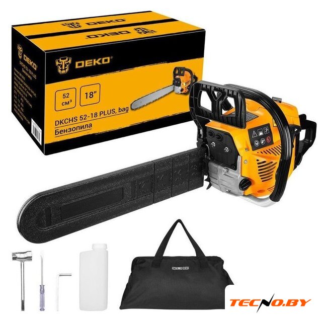 Комплект поставки | - Основной корпус - 1 шт.- Шина - 1 шт.- Цепь - 1 шт.- Защитный щиток - 1 шт.- Зубчатый упор (гребенка) - 1 шт.- Емкость для топливной смеси - 1 шт.- Комбинированный ключ - 1 шт.- Шестигранный ключ - 1 шт.- Отвертка - 1 шт.- Винт - 2 шт.- Сумка - 1 шт.- Руководство по эксплуатации- Коробка |