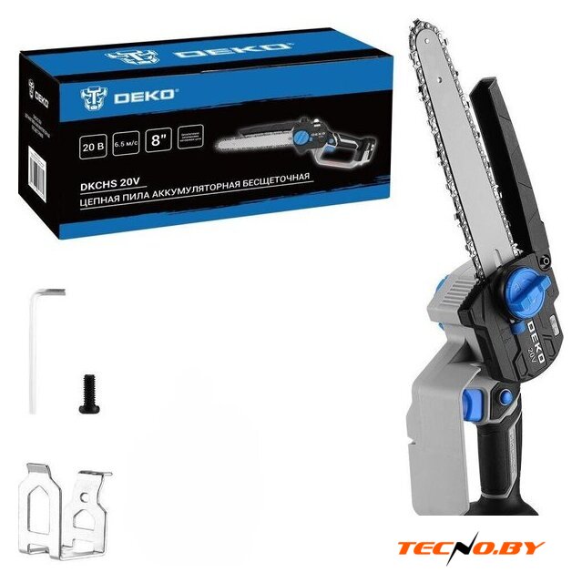 аккумуляторная, бытовая, 20 В, шаг цепи: 1/4 дюйма, длина шины: 15 см, без аккумулятора в комплекте, быстрое натяжение цепи, 1.9 кг