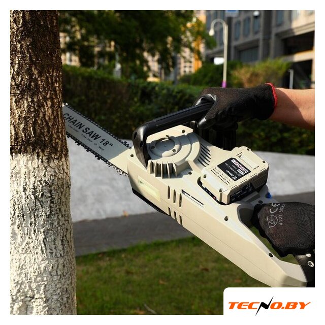 аккумуляторная, бытовая, 20 В, шаг цепи: 3/8 дюйма, длина шины: 35 см, аккумулятор в комплекте, быстрое натяжение цепи