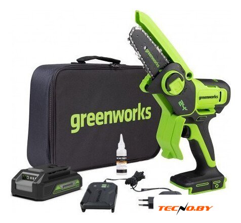 Комплект поставки | - Аккумуляторная электропила- Аккумулятор 4 Ач- Зарядное устройство- Сумка |