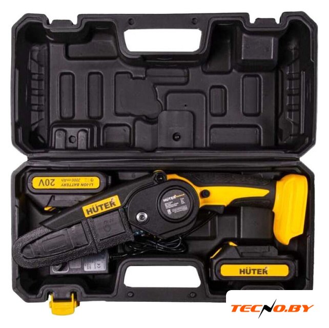 Комплект поставки | - Электропила аккумуляторная — 1 шт.- Шина — 1 шт.- Цепь — 1 шт.- Защитный чехол шины — 1 шт.- Паспорт продукции — 1 шт.- Универсальный ключ — 1 шт.- Аккумулятор – 2 шт.- Зарядное устройство – 1 шт. |