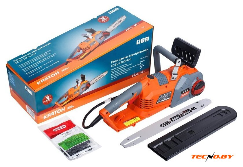 Комплект поставки | 1. Пила цепная электрическая Кратон "Зверь машина" ECSS-2400/400: 1 шт.2. Шина направляющая: 1 шт.3. Цепь пильная: 1 шт.4. Кожух защитный: 1 шт.5. Ключ комбинированный (ключ-отвертка): 1 шт.6. Инструкция по эксплуатации: 1 шт. |