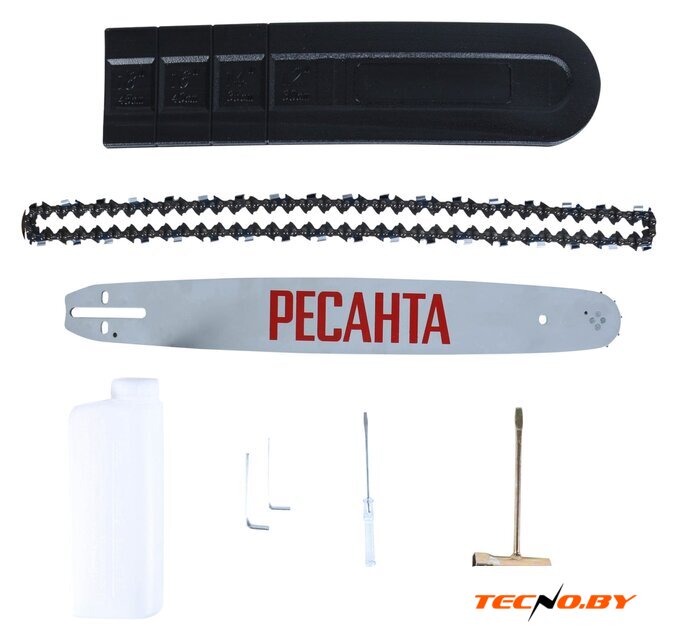 Комплект поставки | Бензопила - 1 шт.Шина - 1 шт.Цепь - 1 шт.Защитный кожух шины - 1 шт.Ёмкость для смешивания топливной смеси - 1 шт.Комплект инструментов и принадлежностей - 1 шт. |