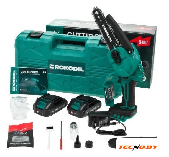 | Комплект поставки | - Две аккумуляторные батареи 2 Ач- Две цепи- Кейс для транспортировки и хранения- Защитные очки- Напильник для заточки цепи- Масленка- Щетка для очистки- Зарядное устройство |