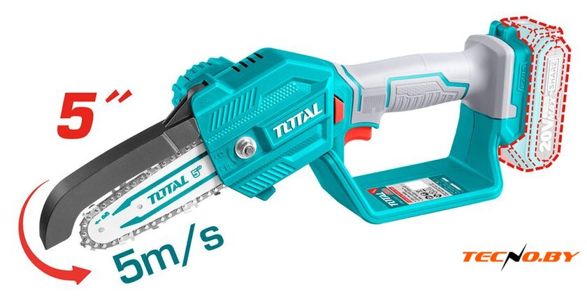 аккумуляторная, бытовая, 20 В, шаг цепи: 1/4 дюйма, длина шины: 15 см, аккумулятор в комплекте, 1.8 кг