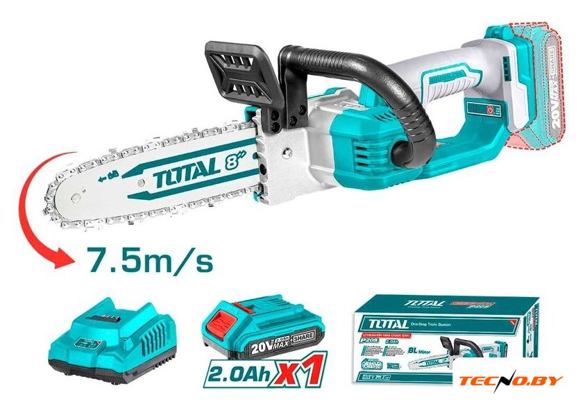 Комплект поставки | Пила- 1 шт.Шина - 1 шт.Цепь - 1 шт.Аккумулятор 2,0 Ач - 1 шт.Зарядное устройство - 1 шт.Масло для смазки цепи - 15 мл.ИнструкцияКоробка |