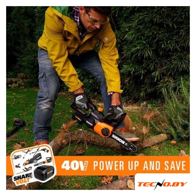 аккумуляторная, полупрофессиональная, 60 В, шаг цепи: 3/8 дюйма, длина шины: 40 см, без аккумулятора в комплекте, 4.3 кг