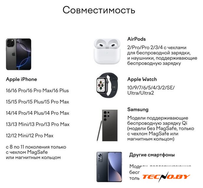 | Назначение | для телефонов, для наушников, для умных часов и/или браслетов |