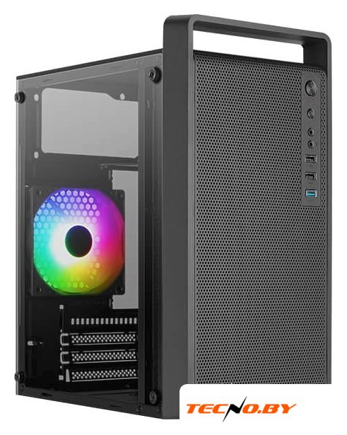 аквариум/Mini Tower, БП отсутствует, для плат micro-ATX/mini-ITX, окно: закаленное стекло, видеокарта до 320 мм, охлаждение ЦП до 155 мм, пылевые фильтры, 1xUSB 2.0, 1xUSB-A 3.2 5Гбит/с, 1xUSB-C 3.2 5Гбит/с, цвет черный