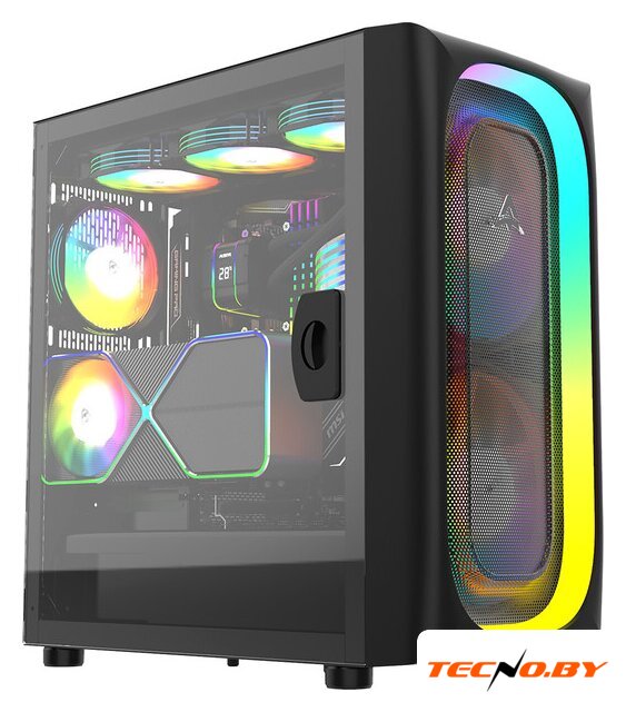 Mid Tower, БП отсутствует, для плат ATX/micro-ATX/mini-ITX, в комплекте 4 вентилятора, окно: закаленное стекло, видеокарта до 370 мм, охлаждение ЦП до 165 мм, пылевые фильтры, 2xUSB-A 3.2 5Гбит/с, цвет черный