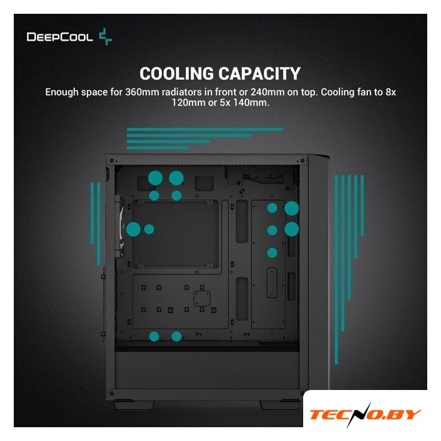 | Конфигурация вентиляторов | Спереди: 3×120 / 3×140 ммСверху: 2×120 / 2×140 ммСзади: 1×120 ммСнизу: 2x120 ммВ комплекте:Спереди: 3×120 ммСзади: 1×120 мм |