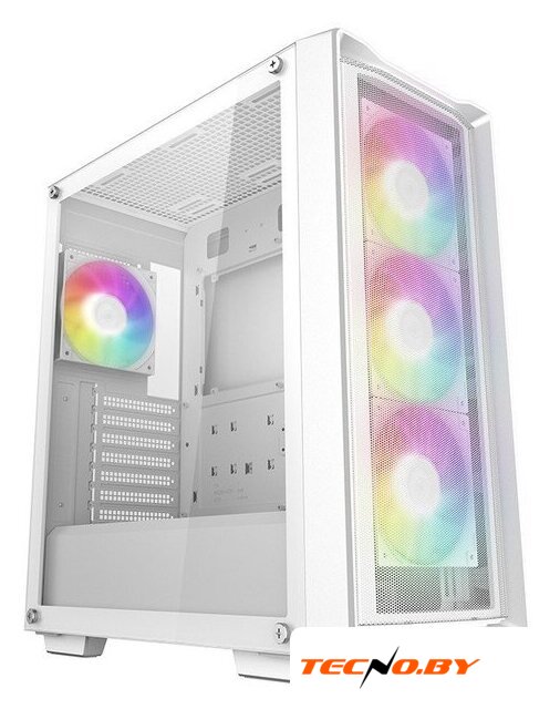Mid Tower, БП отсутствует, для плат ATX/micro-ATX/mini-ITX, в комплекте 4 вентилятора, окно: закаленное стекло, видеокарта до 335 мм, охлаждение ЦП до 166 мм, пылевые фильтры, 2xUSB-A 3.2 5Гбит/с, 1xUSB-C 3.2 5Гбит/с, цвет белый