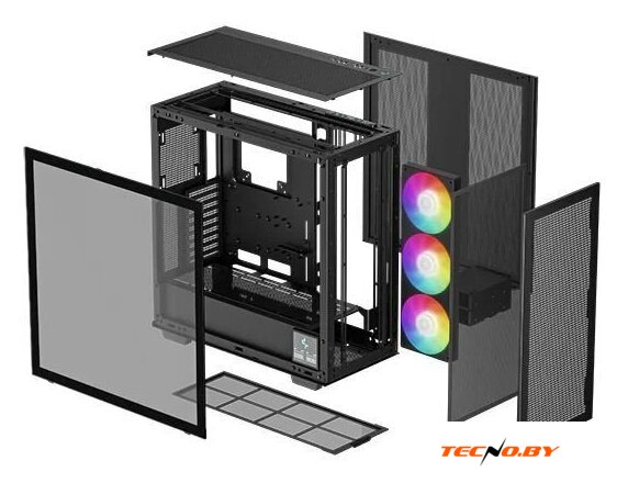 Mini Tower, БП отсутствует, для плат micro-ATX/mini-ITX, с 4 вентиляторами в комплекте, окно: закаленное стекло, видеокарта до 380 мм, охлаждение ЦП до 165 мм, пылевые фильтры, 2xUSB-A 3.2 5Гбит/с, 1xUSB-C 3.2 10Гбит/с, цвет черный