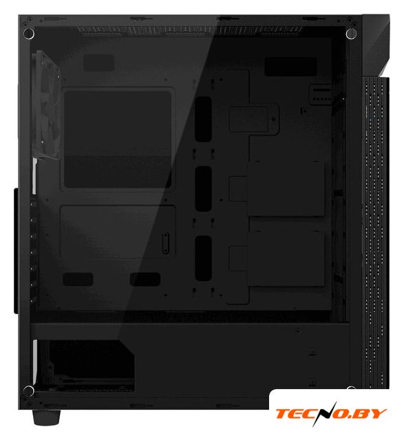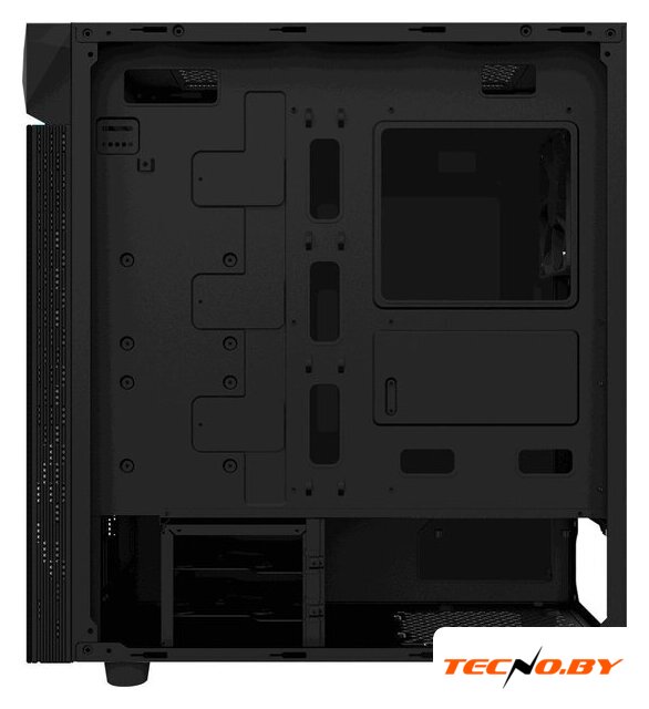 Mid Tower, блок питания отсутствует, для плат ATX/micro-ATX/mini-ITX, 6 вентиляторов, 2xUSB 2.0, 1xUSB 3.0, окно: закаленное стекло, цвет корпуса черный