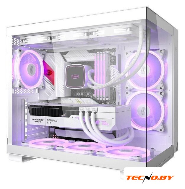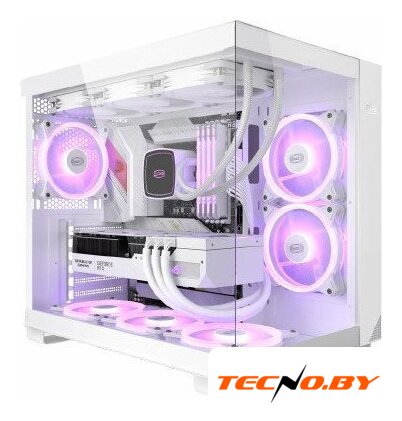 аквариум/Mid Tower, БП отсутствует, для плат ATX/micro-ATX/mini-ITX, в комплекте 4 вентилятора, окно: закаленное стекло, видеокарта до 410 мм, охлаждение ЦП до 176 мм, пылевые фильтры, 2xUSB-A 3.2 5Гбит/с, 1xUSB-C 3.2 5Гбит/с, цвет белый