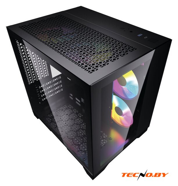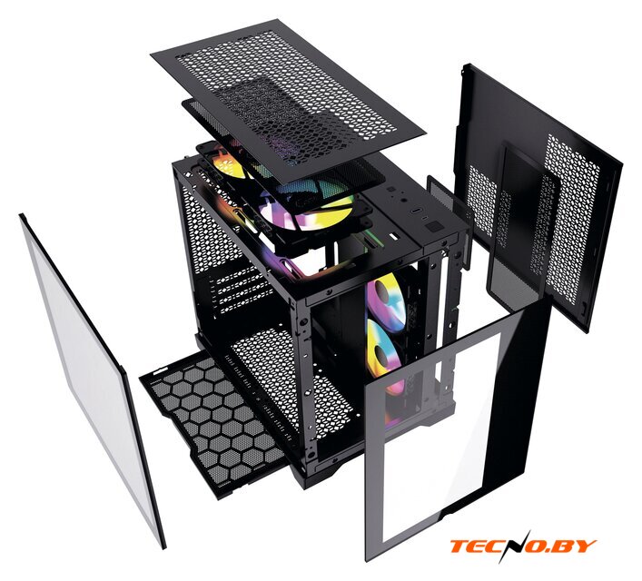 Mid Tower, БП отсутствует, для плат ATX/micro-ATX/mini-ITX, в комплекте 4 вентилятора, окно: закаленное стекло, видеокарта до 380 мм, охлаждение ЦП до 160 мм, 2xUSB 2.0, 1xUSB-A 3.2 5Гбит/с, цвет черный