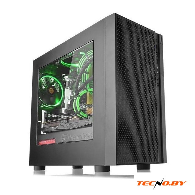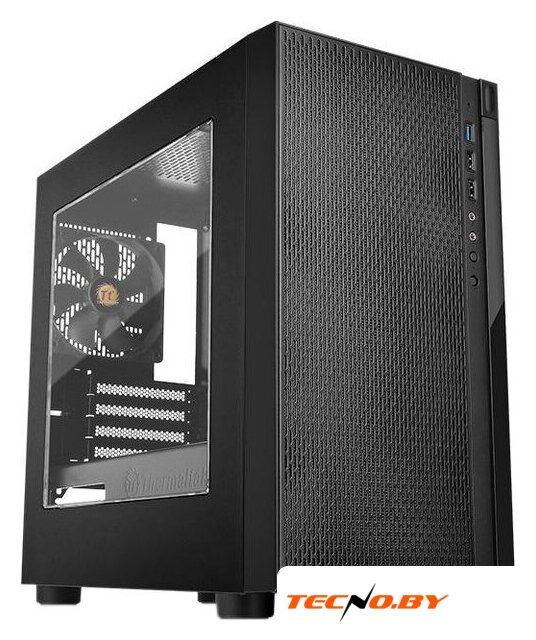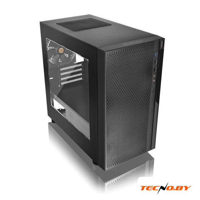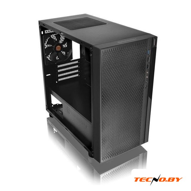 Mini Tower, блок питания отсутствует, для плат mini-ITX, 0 вентиляторов, 1xUSB 3.0, окно: закаленное стекло, цвет корпуса черный