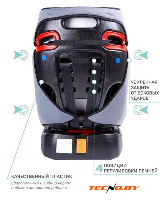 кресло, группа 0/1/2/3 (до 36 кг), крепление посредством ремней автомобиля/ISOFIX/якорное, ремни: ремень автомобиля, боковая защита