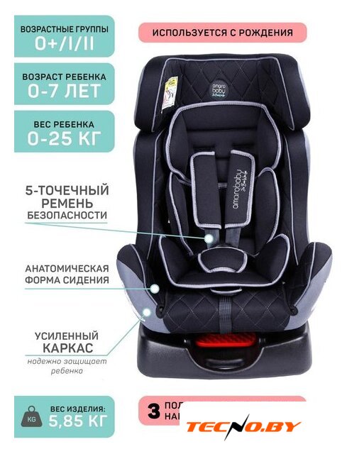 кресло, группа 0/1/2 (до 25 кг), крепление посредством ремней автомобиля, ремни: внутренние пятиточечные, боковая защита