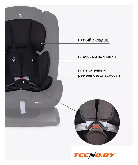 кресло, группа 1/2/3 (9-36 кг), крепление посредством ремней автомобиля, ремни: ремень автомобиля/внутренние пятиточечные, боковая защита