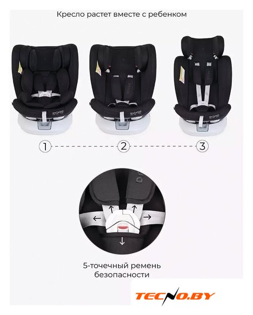 кресло, группа 0/1/2/3 (до 36 кг), крепление посредством ремней автомобиля, ремни: внутренние пятиточечные, боковая защита