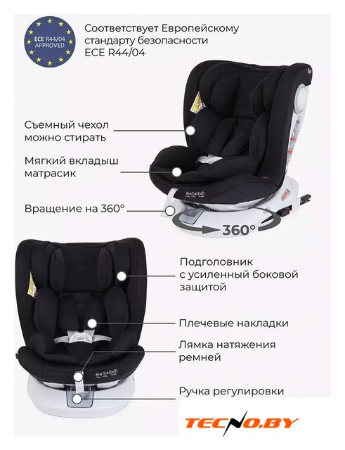 кресло, группа 0/1 (до 18 кг), стандарт i-Size, рост 40-105 см, крепление посредством ремней автомобиля/ISOFIX/упор в пол, ремни: внутренние пятиточечные, боковая защита
