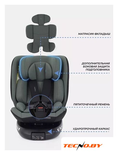 кресло, группа 0/1/2/3 (до 36 кг), крепление посредством ремней автомобиля, ремни: внутренние пятиточечные, боковая защита