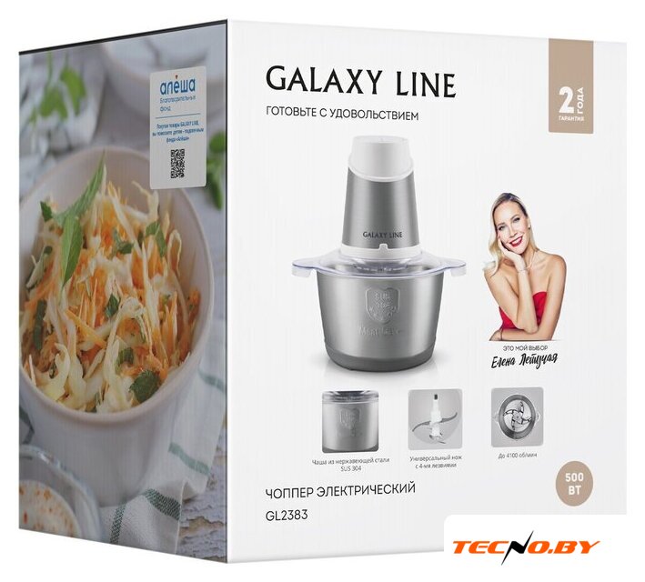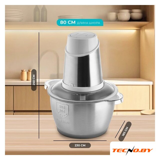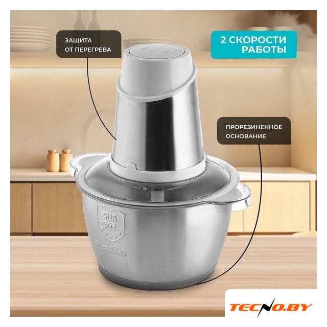 чоппер, питание от сети, 300 Вт, регулировка скорости, чаша 2 л, материал чаши: стекло, материал корпуса: пластик, белый