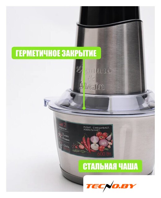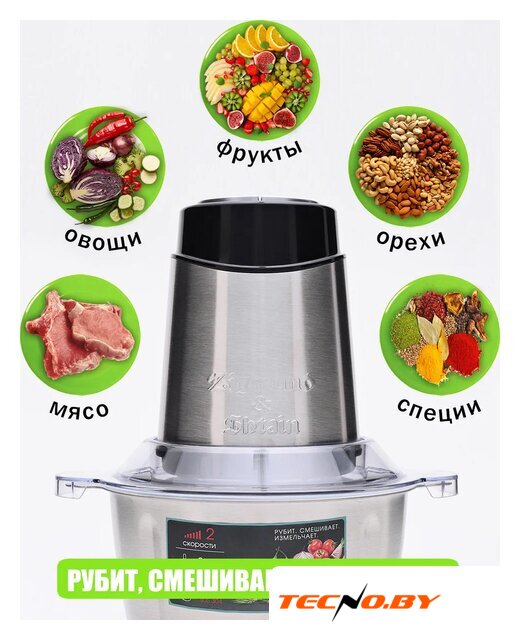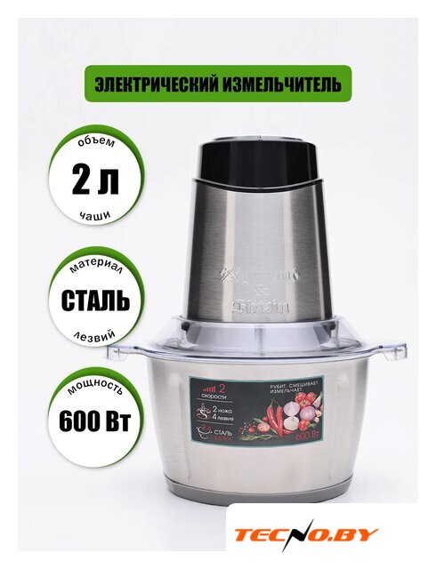 чоппер, питание от сети, 500 Вт, регулировка скорости, чаша 1.8 л, материал чаши: металл, материал корпуса: металл, нержавеющая сталь