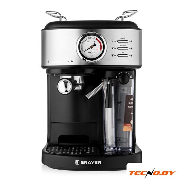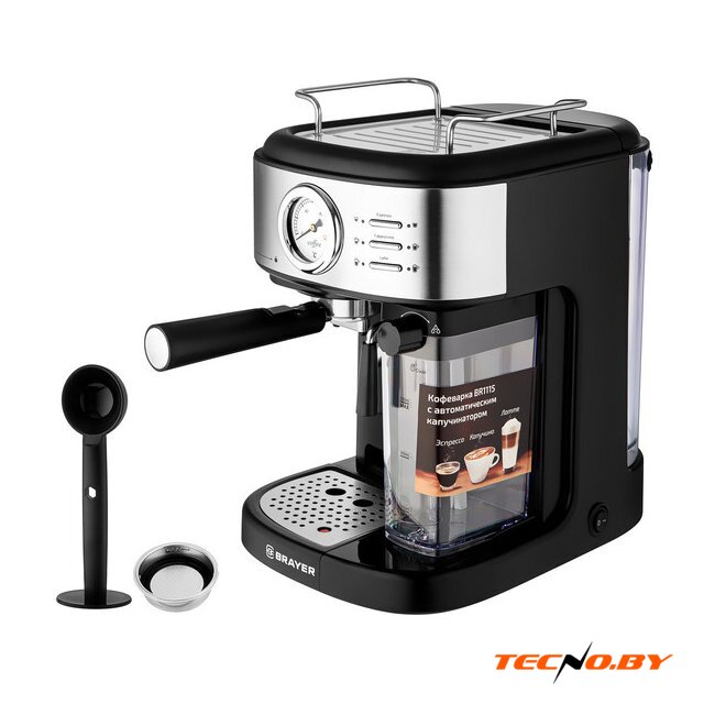 капельная кофеварка/рожковая бойлерная кофеварка, 1850 Вт, корпус металл/пластик, капучинатор ручной, используемый кофе: молотый, цвет нержавеющая сталь/черный