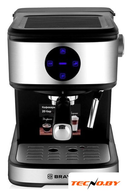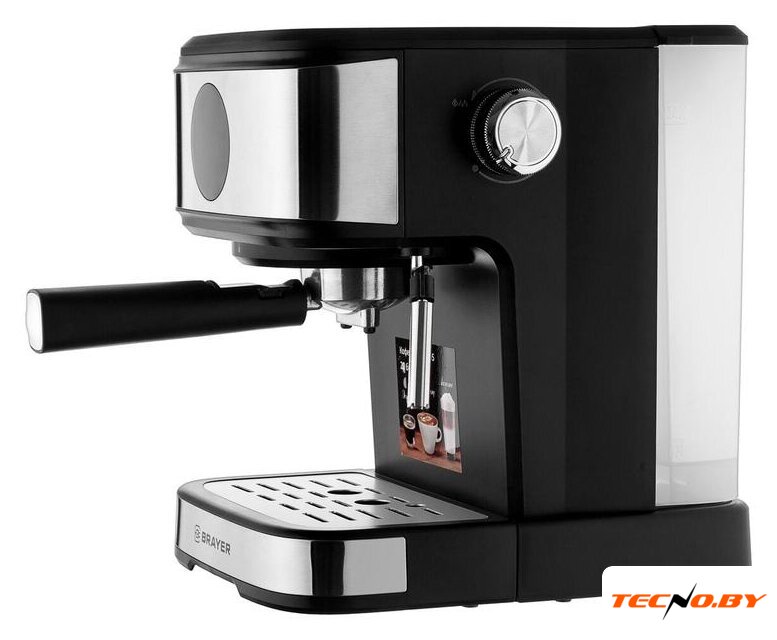 рожковая помповая кофеварка, 1050 Вт, корпус металл/пластик, капучинатор ручной, цвет нержавеющая сталь/черный