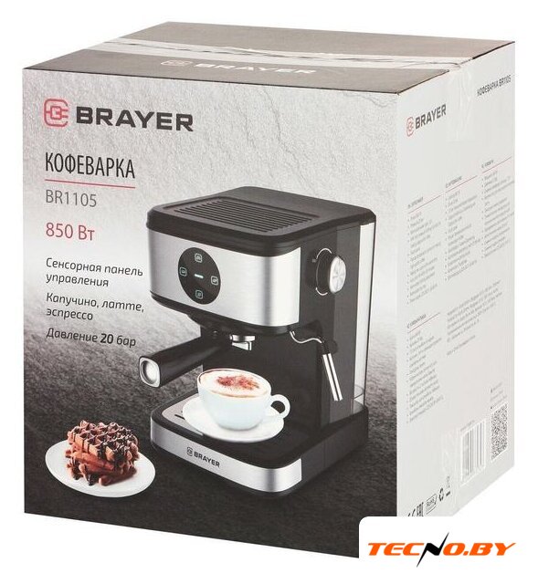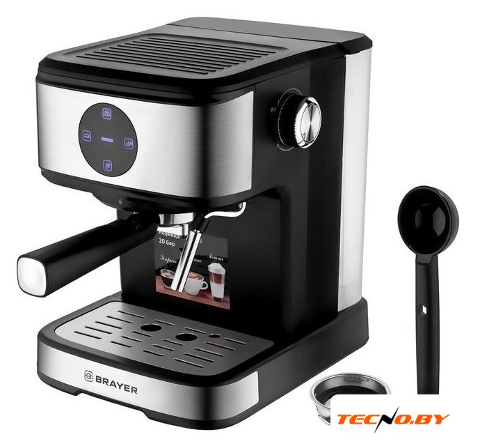 рожковая помповая кофеварка, 1050 Вт, корпус металл, капучинатор ручной, используемый кофе: молотый, цвет нержавеющая сталь