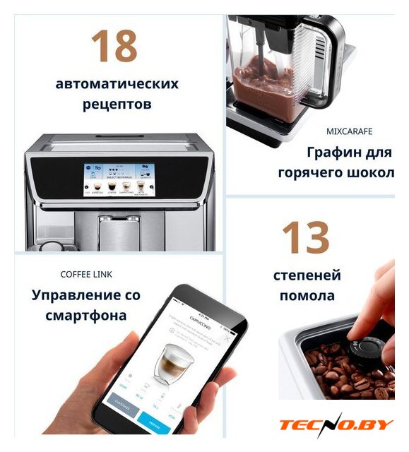 | Программы приготовления | эспрессо, лунго, американо, капучино, латте макиато, эспрессо макиато, флэт уайт, латте, доппио, горячее молоко, горячий шоколад, холодный кофе |