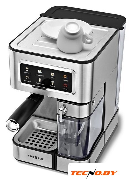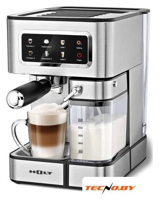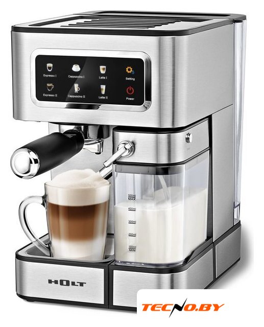 1450 Вт, корпус металл/пластик, капучинатор ручной, используемый кофе: молотый, цвет серебристый