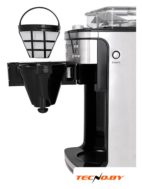 1000 Вт, корпус пластик, используемый кофе: молотый/зерновой, цвет серебристый/черный