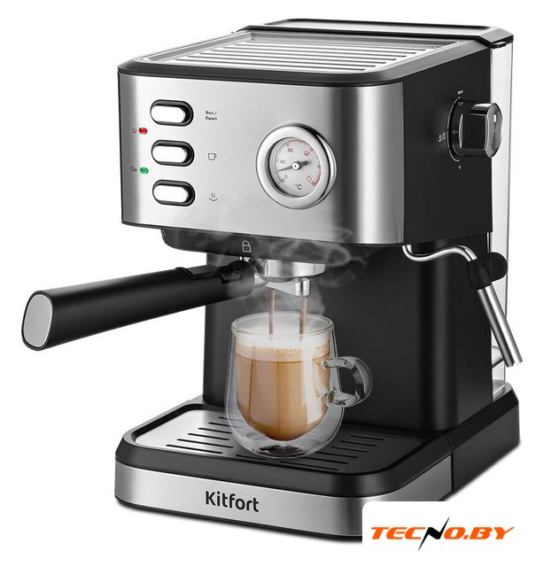 рожковая бойлерная кофеварка, 850 Вт, корпус металл/пластик, капучинатор ручной, используемый кофе: молотый, цвет нержавеющая сталь/черный