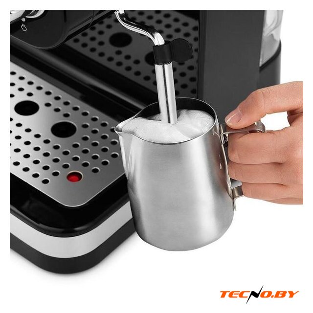 рожковая помповая кофеварка, 1100 Вт, корпус металл/пластик, капучинатор ручной, используемый кофе: молотый, цвет нержавеющая сталь/черный