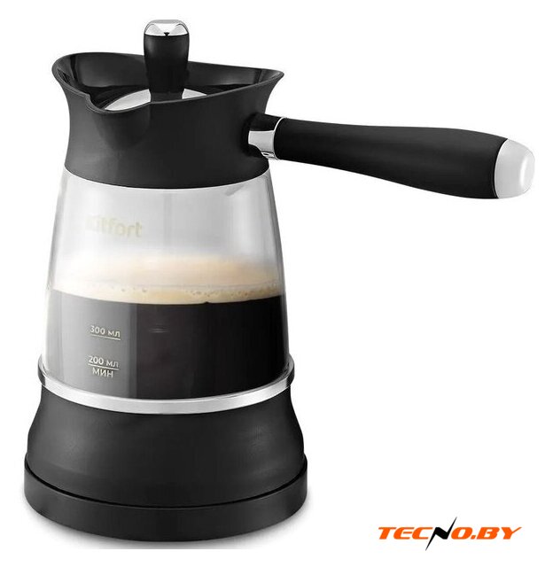 электрическая турка, 480 Вт, корпус пластик/стекло, используемый кофе: молотый, цвет черный
